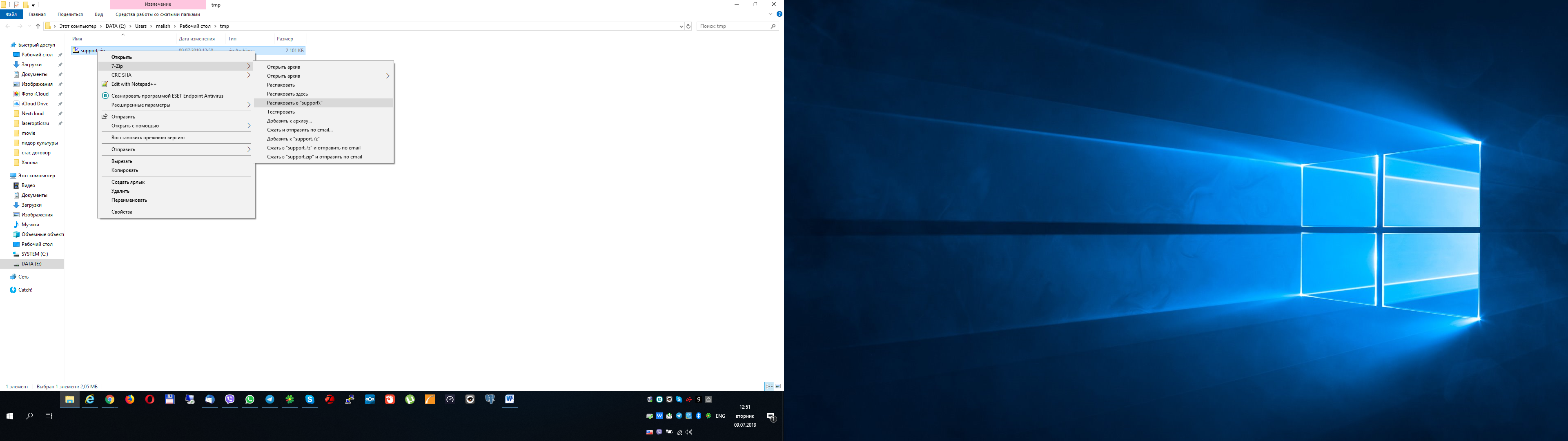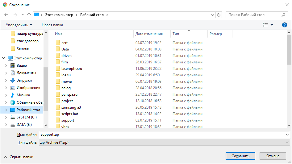 Далее нужно разархивировать архив support.zip.